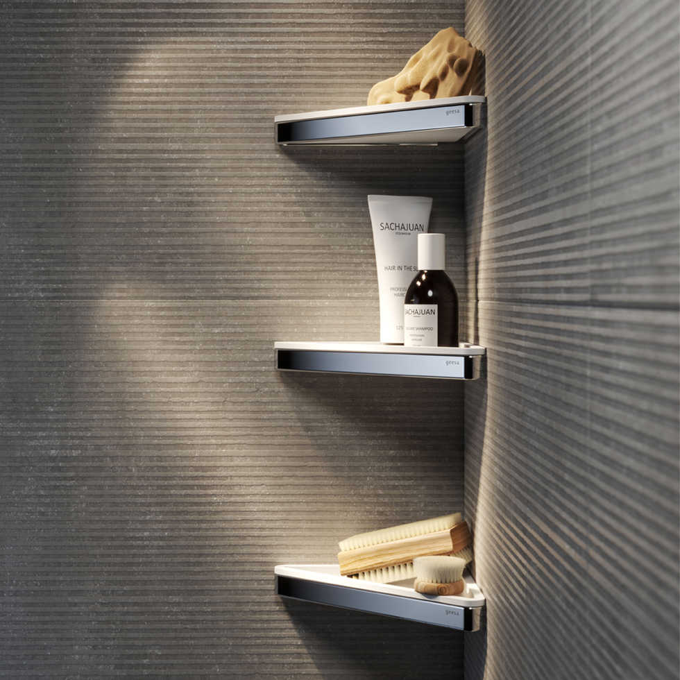 | DESCRIPTION: | Corner shelf 23x17x2.5 cm with removable case and drainage slot |