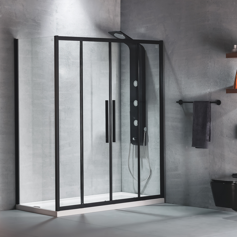| DESCRIPTION: | Shower door with 2 fixed & 2 sliding leaves. It can be installed either alone or with a side panel of 70, 80 or 90 cm. With magnetic closure |