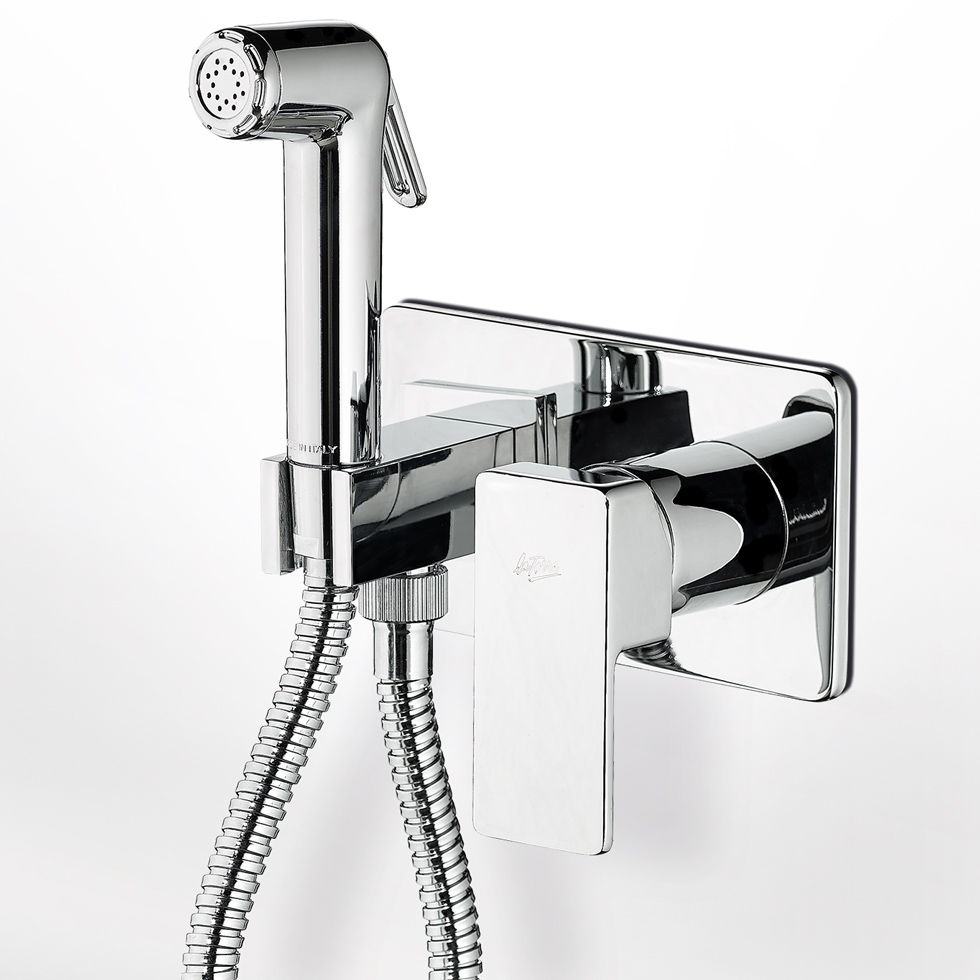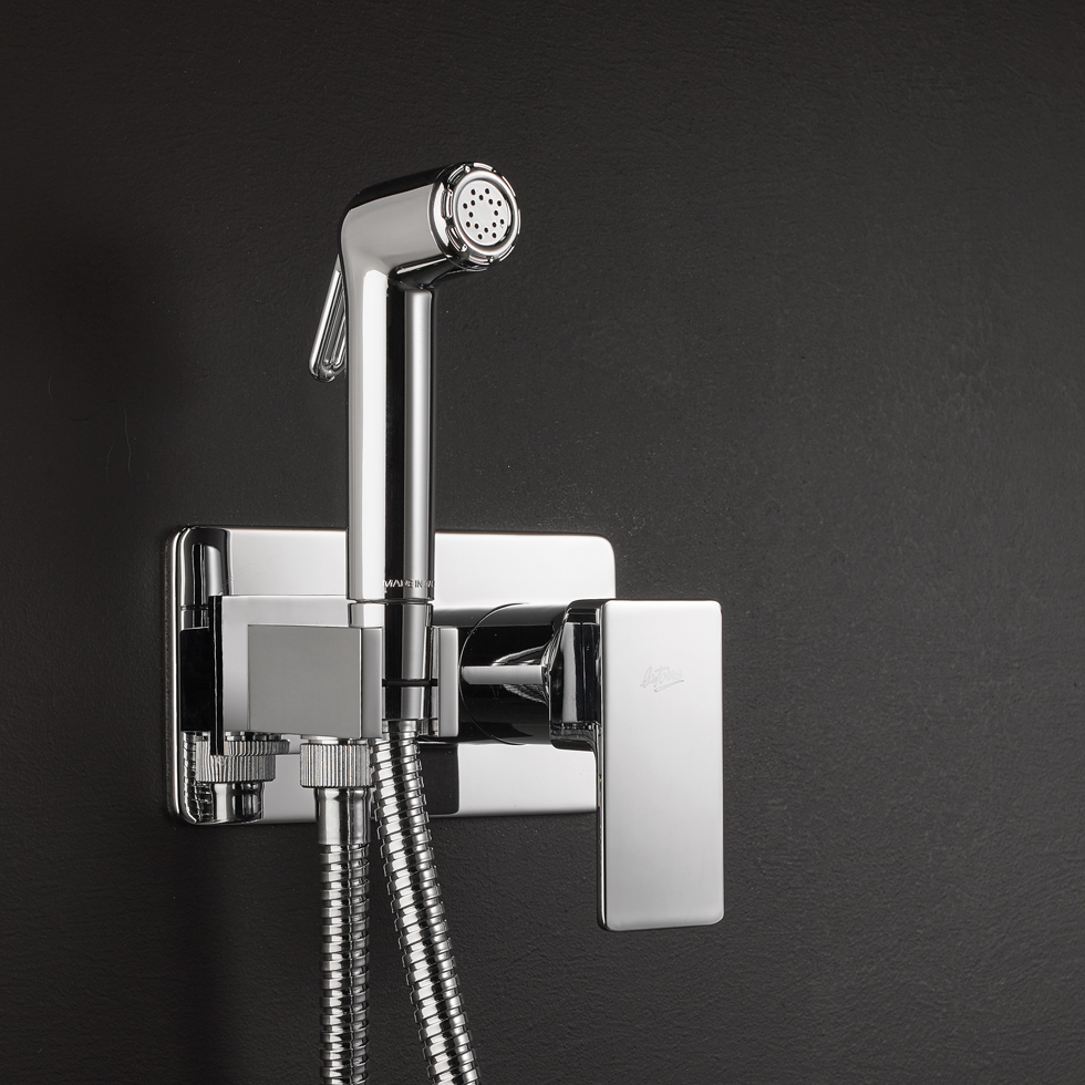 | DESCRIPTION: | 2-hole wall-mounted mixer with shower shut-off, for personal hygiene washing or toilet basin washing |