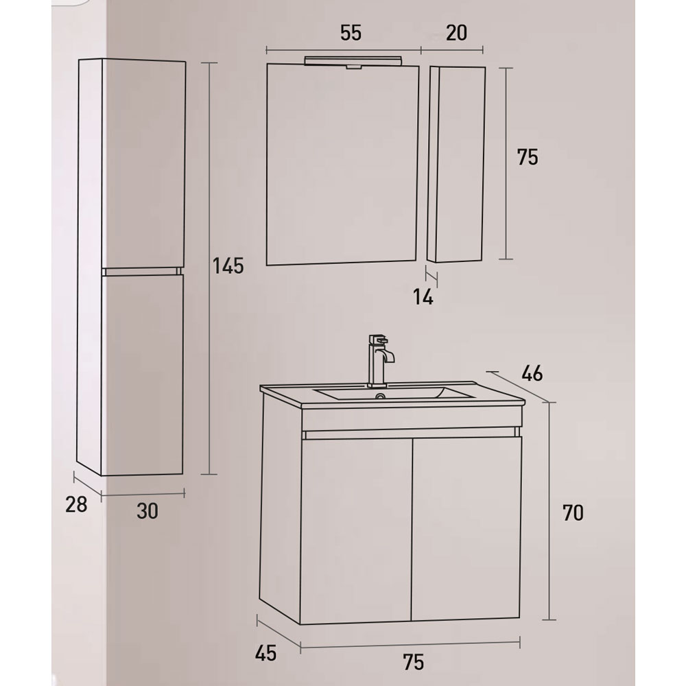 | LOWER PART: | With basin Chic 75 cm |