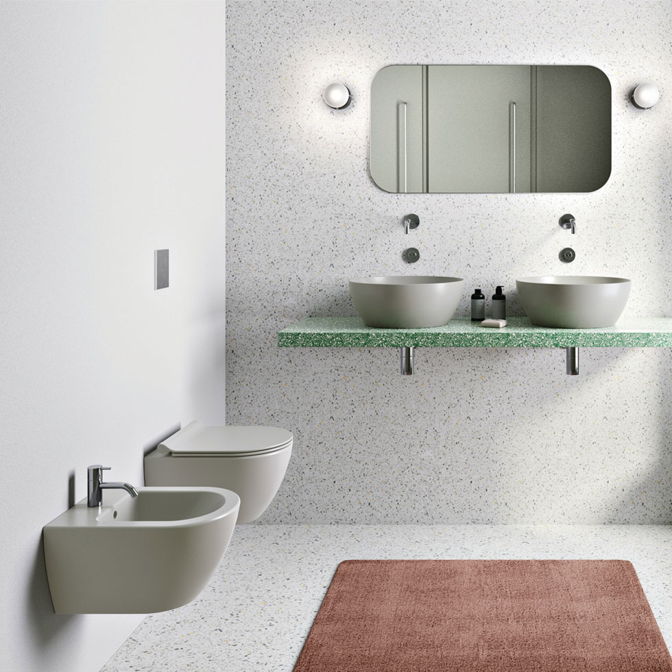 | DESCRIPTION: | Wall hung WC with SwirlFlush® rinsing system that directs the water in a circular motion, ensuring universal cleaning, without the typical annoying noise. The usual 'double' water distribution rim, leaves in place a single rim that is easy to clean |