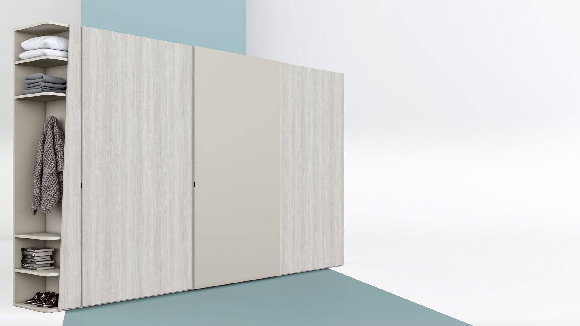 Wordrobe with "ELITE" doorIn Ghibli finish and Light Grey color. |