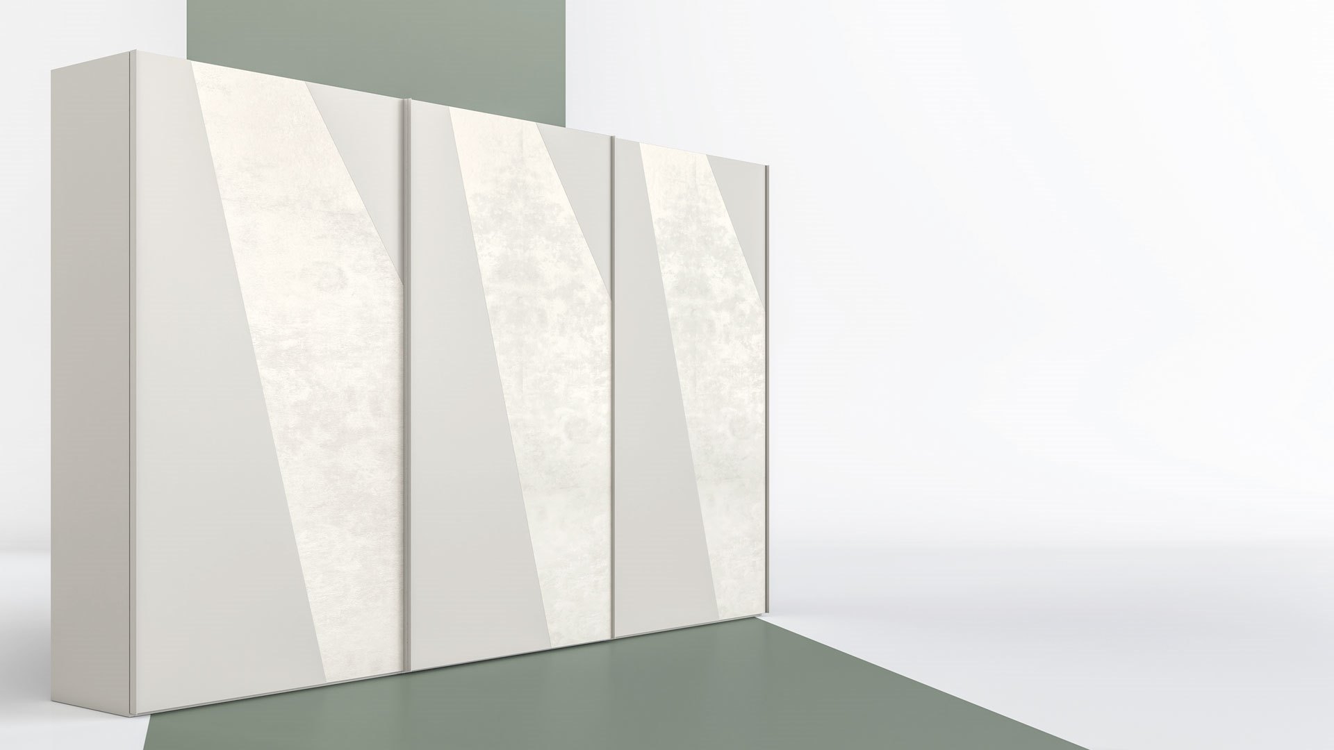 Wordrobe with "KARIM" doorIn Light Grey color and Nirvana Platinum finish. |