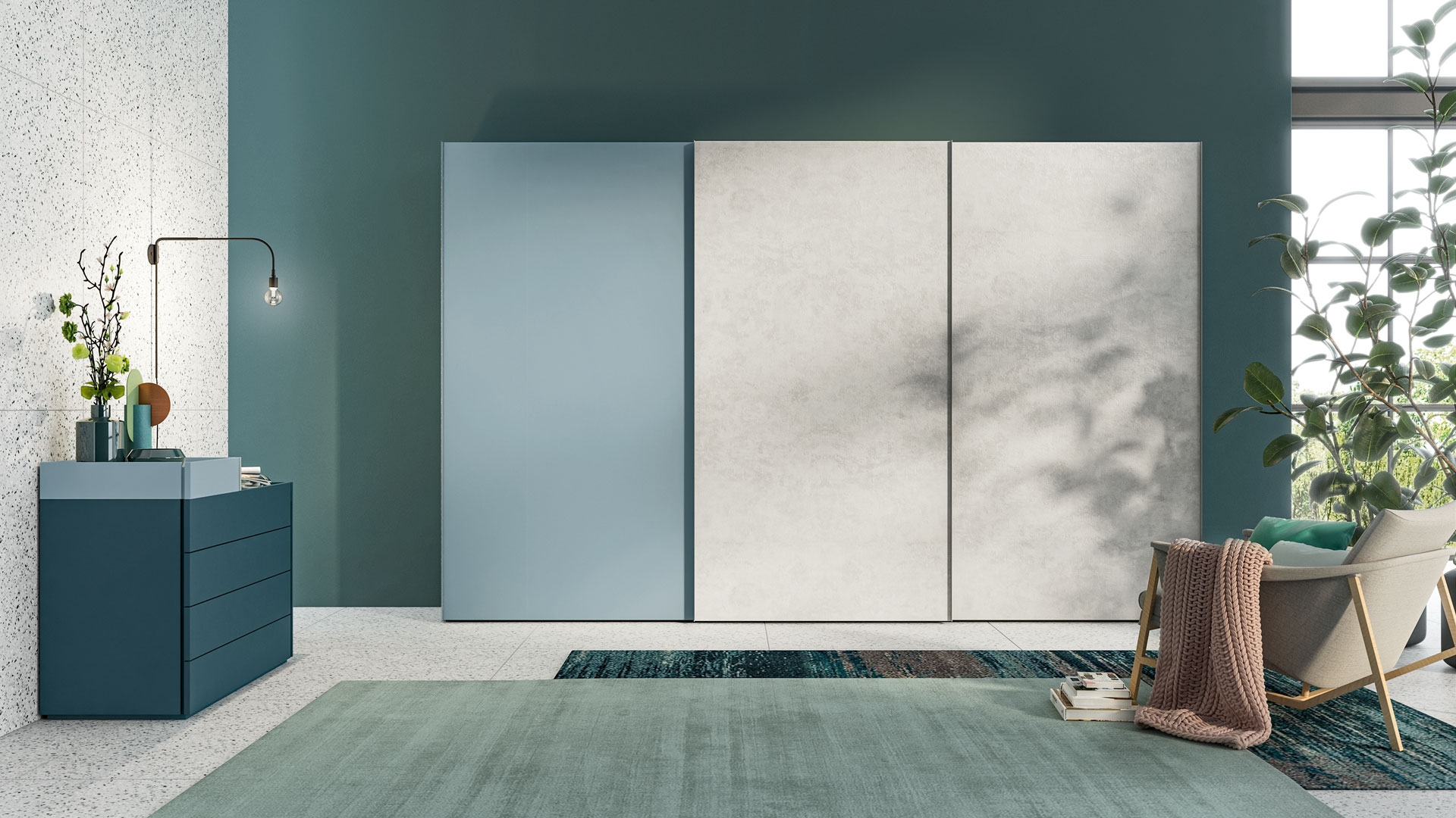 Wordrobe with "NORMAN" doorIn Sky Blue color and Nirvana Platinum finish. |