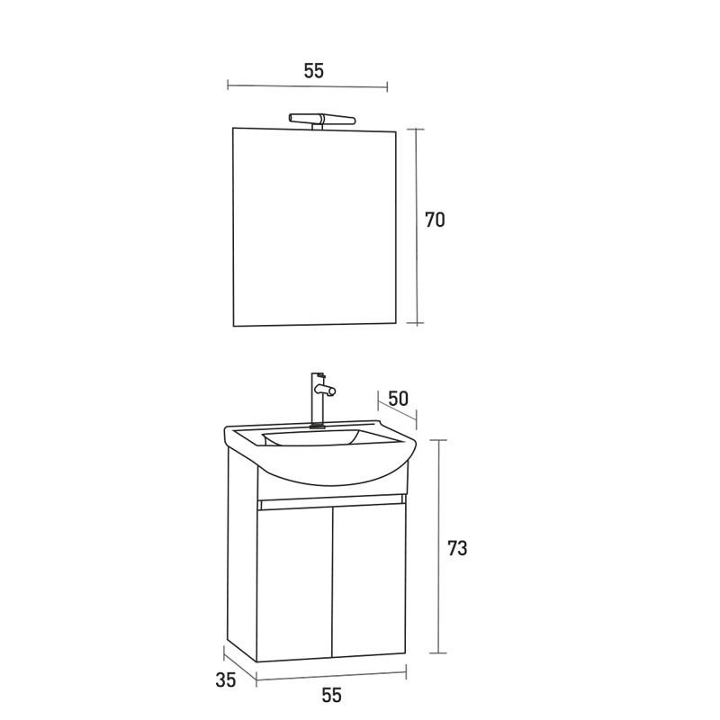 | LOWER PART: | With basin Vega 55 cm |