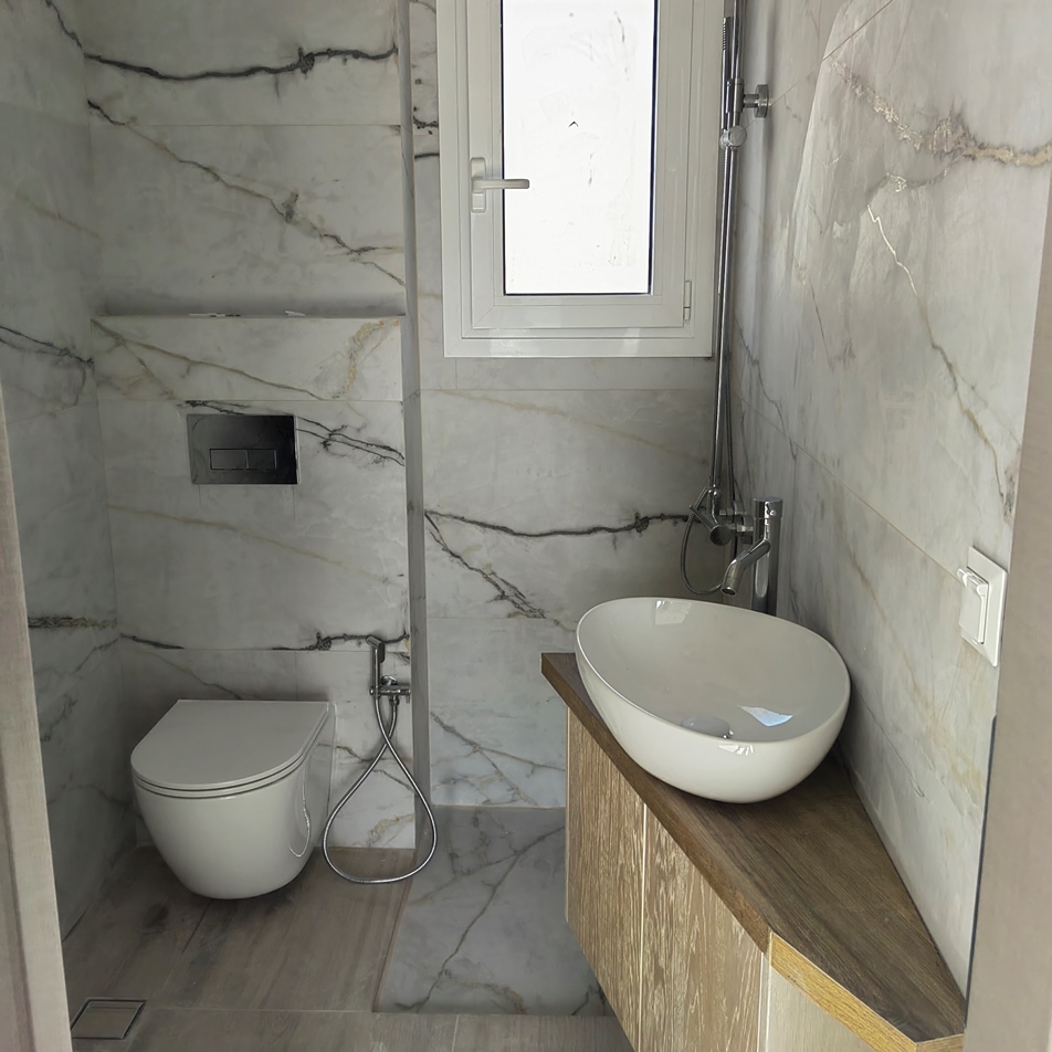 Kitchens, sanitary ware, tiles, doors, wardrobes, in apartments in Porto Rafti.