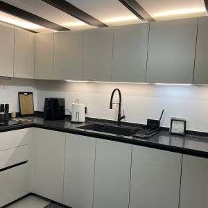 Kitchen furniture by CREO cucine, corian countertops, floor & bathroom tiles, sanitary ware, bathroom furniture, doors and wardrobes.
